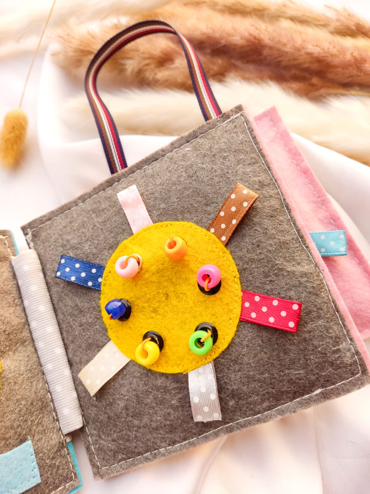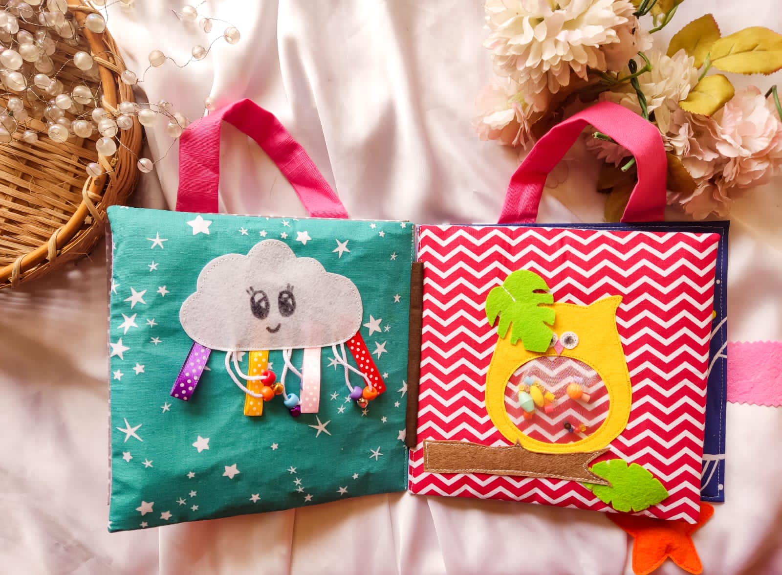 A sensory quiet book for babies and toddlers is a gentle and engaging way to introduce them to different textures, colors, and shapes. Each page may include a different sensory element, such as a mirror, a soft toy, or a squeaker, that encourages exploration and discovery.